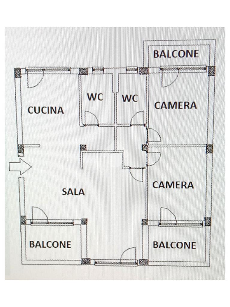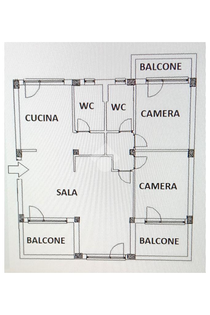 L'abitazione internamente è costituita da un salone luminoso, cucina abitabile, disimpegno, 2 camere e 2 bagni con vasca e doccia.